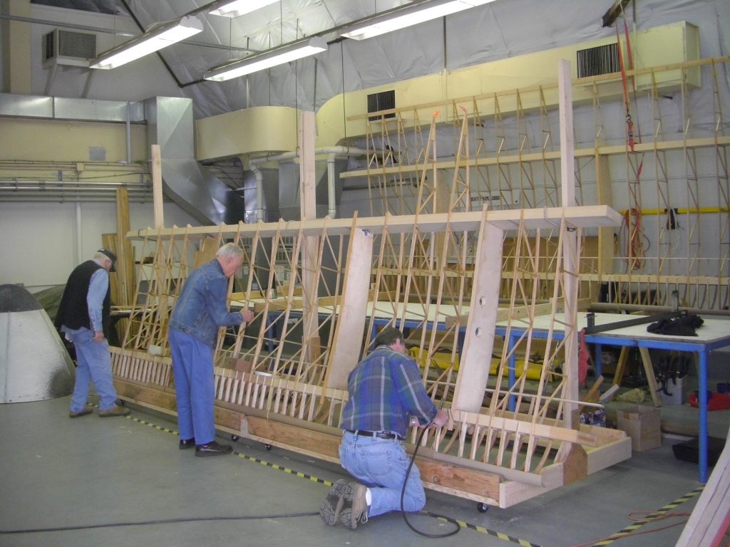 As the project grew, it attracted many wonderful volunteers, moving around Renton Airport: to Aerodyne, a T-hangar, and the Maintenance Quonset Hut, where the fuselage, wings, tail section, landing gear, and wheels were all completed.
